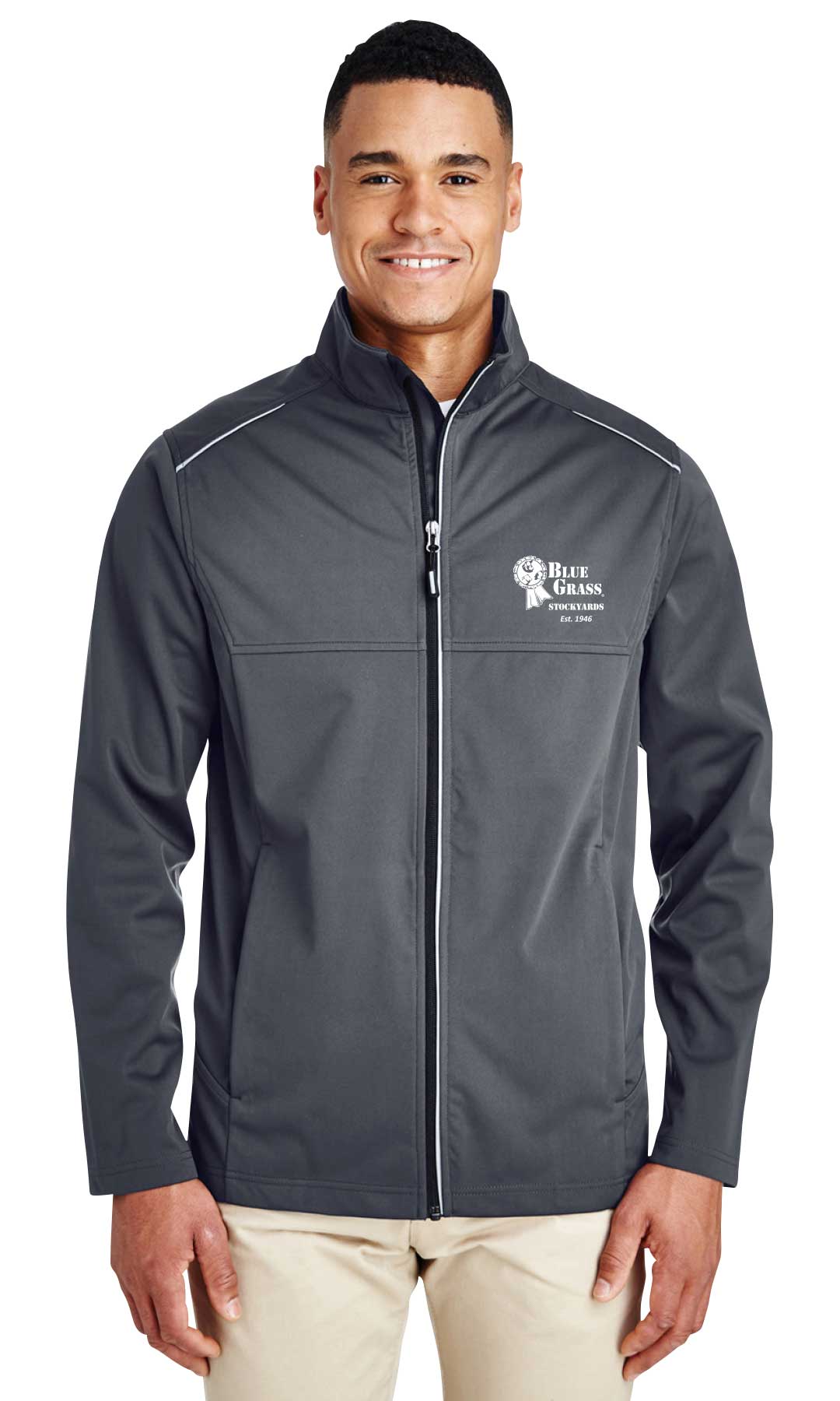 100% polyester and waterproof. Features chin guard, lower zippered pockets, front zipper with reflective toggle and reflective stripe at front and back yoke. Cost may vary on sizes larger than x-large.