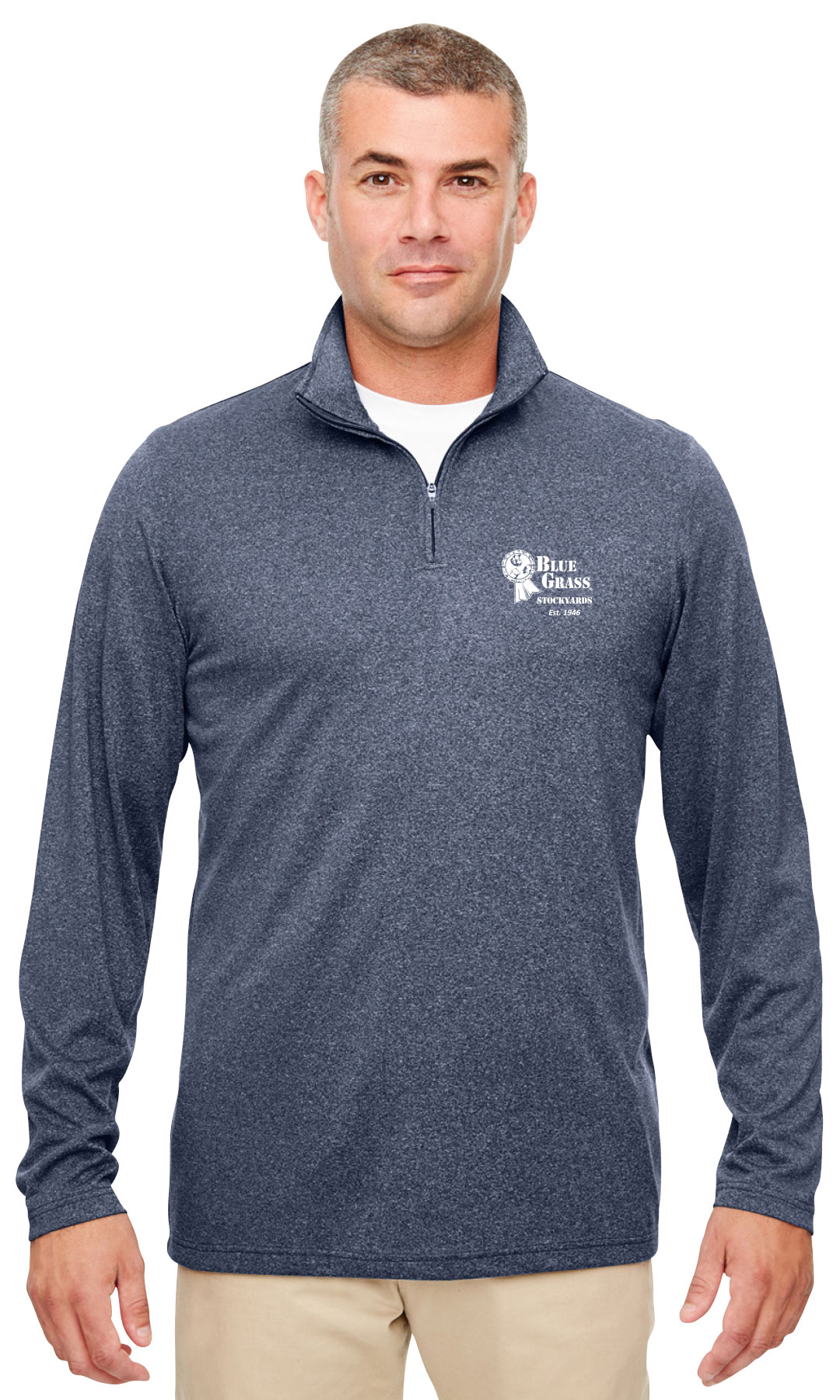 100% snag protection heathered polyester with moisture wic king. Features include back neck tape for clean finish, tagless, and center front coil zipper.